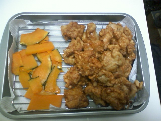 この本は、作っている肯定の画像もあるので、わかりやすくていいです。 というわけで、、鶏のから揚げとかぼちゃの素揚げを作ってみました。 初めての揚げ物でしたが、しっかり中まで火が通っていて、美味しくできました。 食べ過ぎましたw PR |