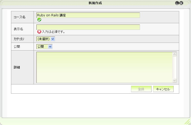 コース・カテゴリ作成ウィンドウの細かい更新をしました。