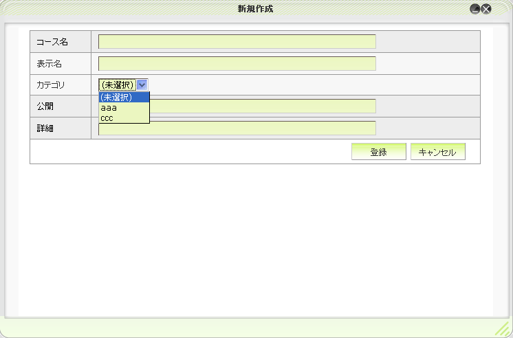 コース作成ウィンドウで、カテゴリを選択できるようにしました。